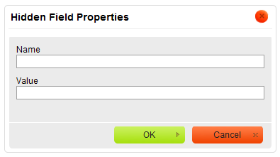 toolbar button. The Hidden Field Properties dialog window that will open lets you set the name and value of a hidden field.