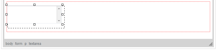 The figure above shows a textarea added to a form. Since the textarea element does not accept a default message that would be shown in the field, it is presented as an empty rectangle. Depending on a browser, a vertical scrollbar might also be visible, and it might be possible to resize the textarea by clicking its frame and dragging with a mouse.