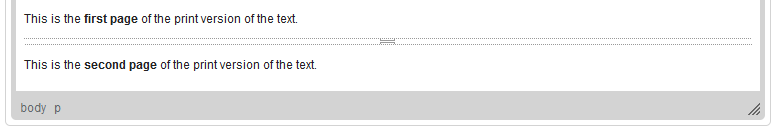 Note that the text entered in a browser-based text editor such as CKEditor differs from a paged medium such as print in that it is not divided into physical pages. If, however, you need to have control over the paging of the printed version, use the