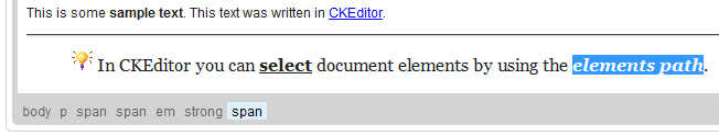 Remember that the elements path is an advanced CKEditor feature that requires some basic understanding of HTML. The same effect can always be achieved by selecting the text directly in the editing area with your mouse or keyboard.