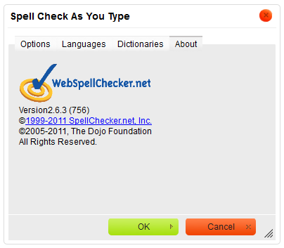 Apart from the SCAYT provider you will be able to learn about the version of the solution as well as see a copyright note.