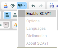 toolbar button, and select the Enable SCAYT option from the menu that opens.